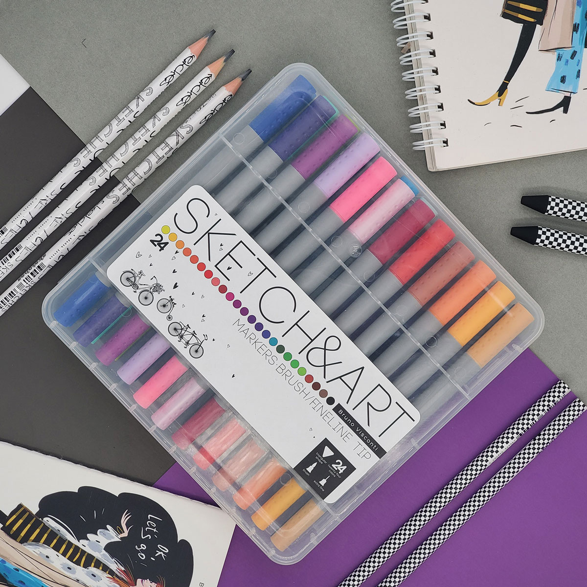 Двувърхи маркер-четка + тънкописец Sketch&Art – 24 цв.