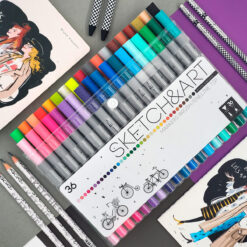 Двувърхи маркер-четка + тънкописец Sketch&Art – 36 цв.