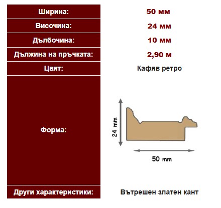 Изпълнението на формите зависи от профила на рамката и избрания размер, като не всеки профил позволява всяка форма. Цената е + €10,00