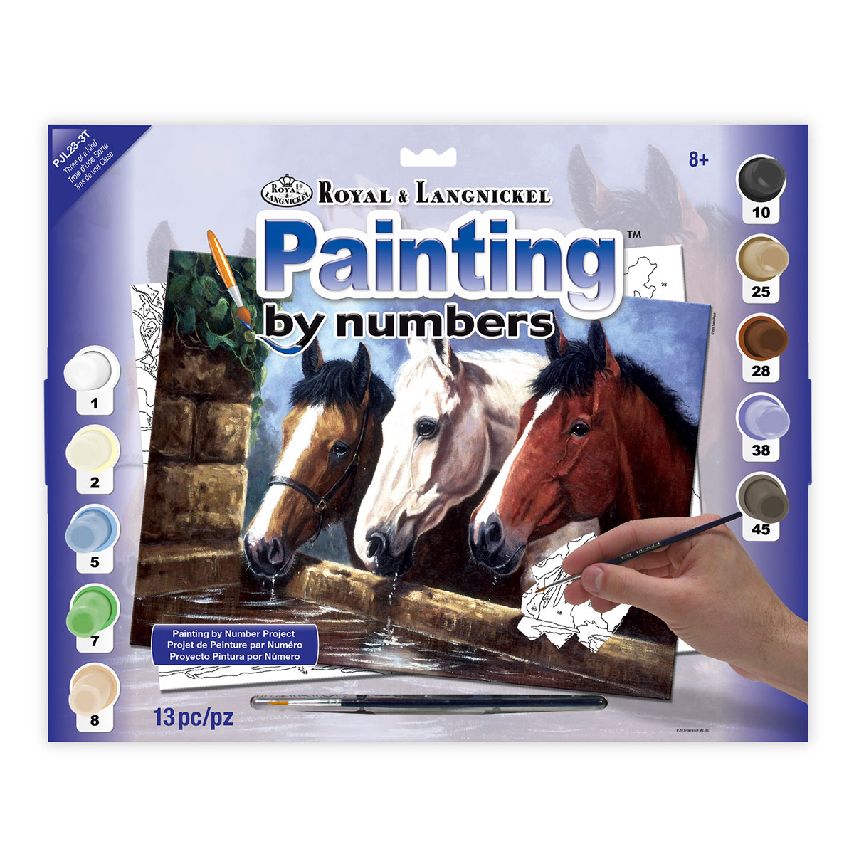 Рисуване по номера с акрилни бои Junior Large – 39х30 – „Коне на водопой“