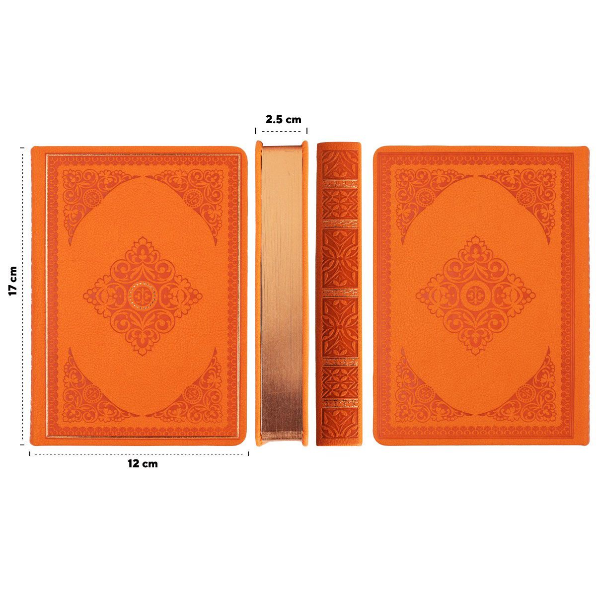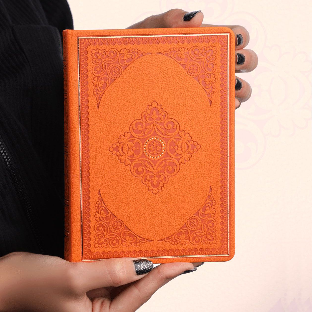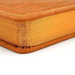 Твърдата корица от еко кожа с релефни орнаменти придава елегантен и стилен вид, а металиковият ръб добавя луксозен акцент.