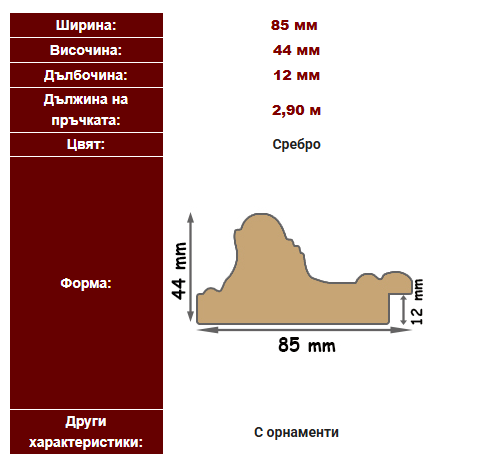 PVC профил за изработване на рамки, за рамкиране на графики, рисунки, огледала, пъзели, плакати, гоблени и др. Широк 85 мм той и много подходящ за големи размери.