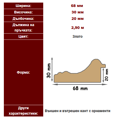 Цената е за линеен метър на профила. Крайната цена се калкулира след уточняване на всички необходими елементи за получаване на готов продукт. За поръчка пишете ни на контактната форма или ни звънете по телефона.