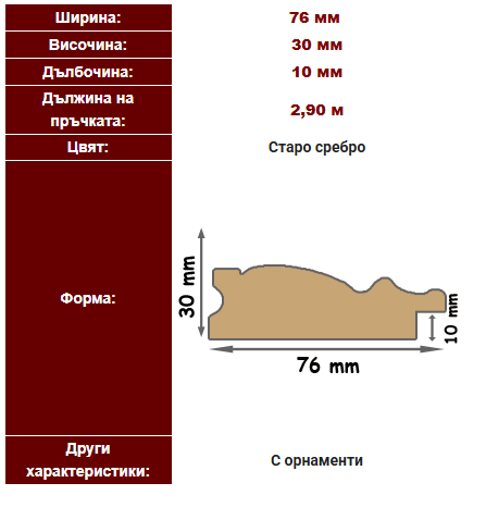 PVC профил за изработване на рамки, за рамкиране на графики, рисунки, огледала, пъзели, плакати, гоблени и др. Широк 76 мм той и много подходящ за големи размери.